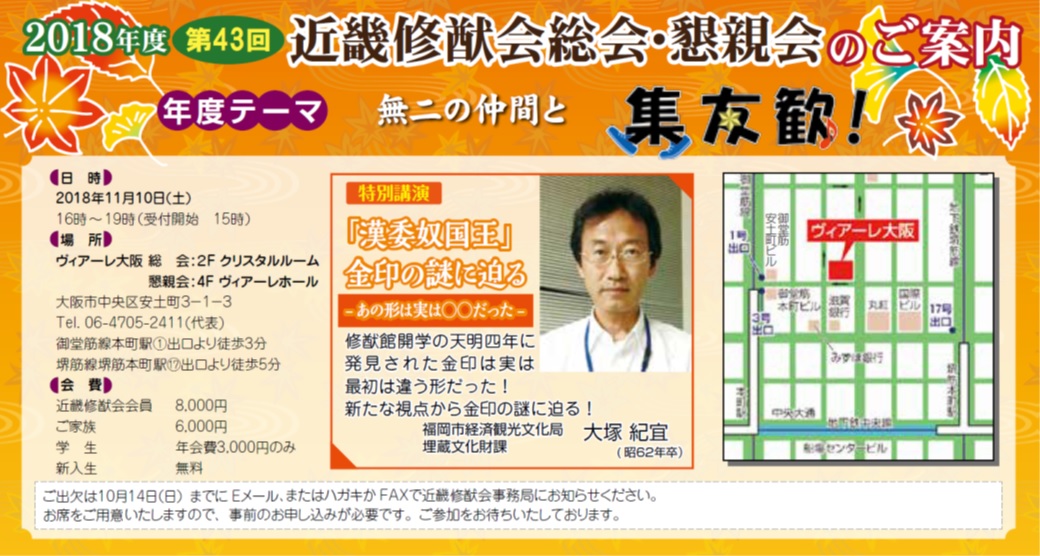 近畿修猷会総会・懇親会のご案内